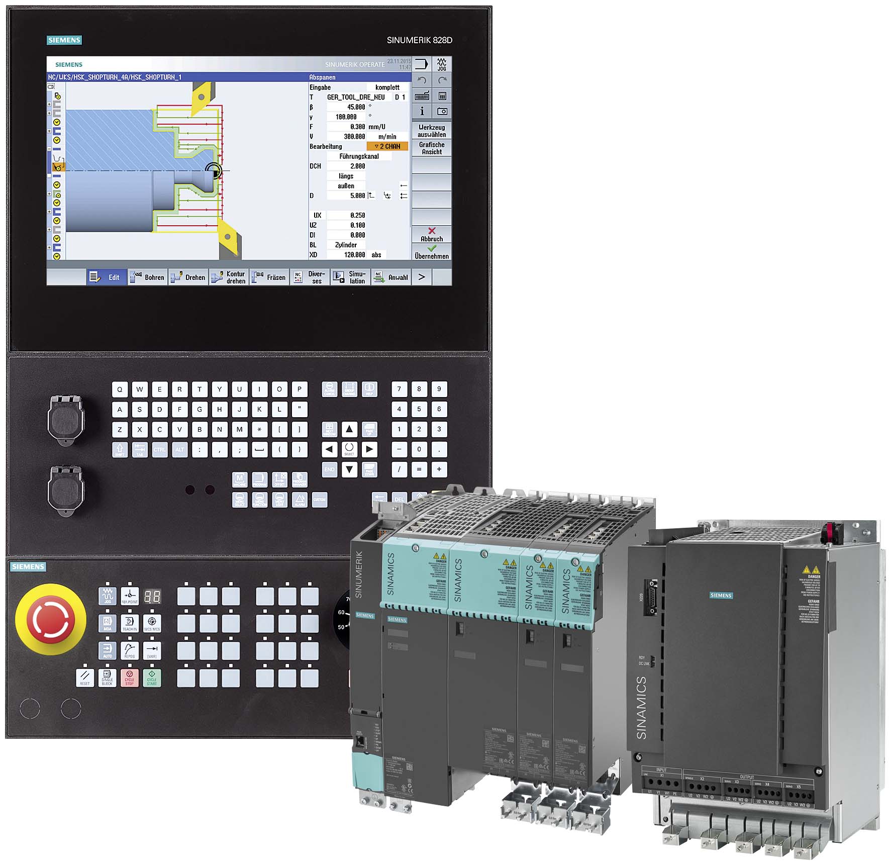 ??我們還為超出SINAMICS S120 Combi動(dòng)力范圍的機(jī)床提供其他解決方案。除了SINAMICS 120 Combi,您還可以使用其他SINAMICS S120驅(qū)動(dòng)系統(tǒng)來(lái)實(shí)現(xiàn) SINUMERIK 828D BASIC T/BASIC M。